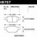 Колодки тормозные HB757Z.758 HAWK PC; перед Audi A6 4G2, C7, 4GC; A7 4GA, 4GF; Allroad 4GH; 19mm