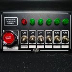 Отличная универсальная панель запуска и зажигания. Используется на гражданских авто и спортивных автомобилях как альтернатива штатному зажиганию, а также красивым тумблерам для подключения периферии, например, дополнительного света, пневмосистем и прочего допоборудования. Эта панель на 6 тумблеров: кнопки+световые индикаторы на каждую кнопку. Сама панель изготовлена из алюминия с полным установочным комплектом