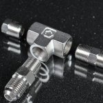 Фитинг - тройник, переходной. Внутри корпуса тройника везде нарезана внутренняя конусная резьба 1/8". В один конец вкручен фитинг переходник с наружной резьбой AN4, в другой - заглушка, а в третий фитинг переходник с наружной резьбой 1/8". Уплотнение происходит за счёт уменьшения зазора между витками конусной резьбы. Наименьшее проходное сечение будет равно 4 мм.