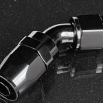 Фитинг соединительный, под углом в 45 градусов. С одного конца фитинга находится гайка с внутренней резьбой AN16, с другого - муфта обжимная для шлангов AN16. Цвет - чёрный